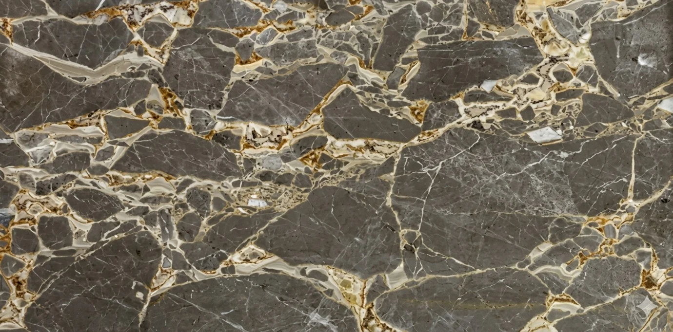 Caramel Grey is a Turkish marble recognized for its grey brecciated structure, warm caramel veining and refined architectural depth. The combination of medium to dark grey tones with beige, ivory and soft brown transitions creates a strong yet balanced surface character, making it well suited for sophisticated interiors that require warmth, expressive natural movement and a clear material identity. Browse the marble collection for warm-toned Turkish grey marble with caramel and beige accents and read What Is Marble: Properties and Uses for formation context. At Marque Natural Stones, Caramel Grey is supplied as marble slabs, marble tiles and marble blocks for project-based architectural applications. The material is used for interior flooring, wall cladding, bathroom surfaces, vanity tops, kitchen surfaces, staircases, feature walls and cut-to-size elements in residential, hotel and commercial projects where a grey marble with warm caramel-beige movement is required. Caramel Grey slabs are generally produced in 2 cm and 3 cm thicknesses and can be prepared with polished, honed or brushed finishes according to project requirements. The stone performs well in contemporary interiors that combine natural stone with dark wood, bronze, brushed metal, glass and warm neutral palettes, supporting compositions that need architectural depth, tonal richness and long-term supply consistency.